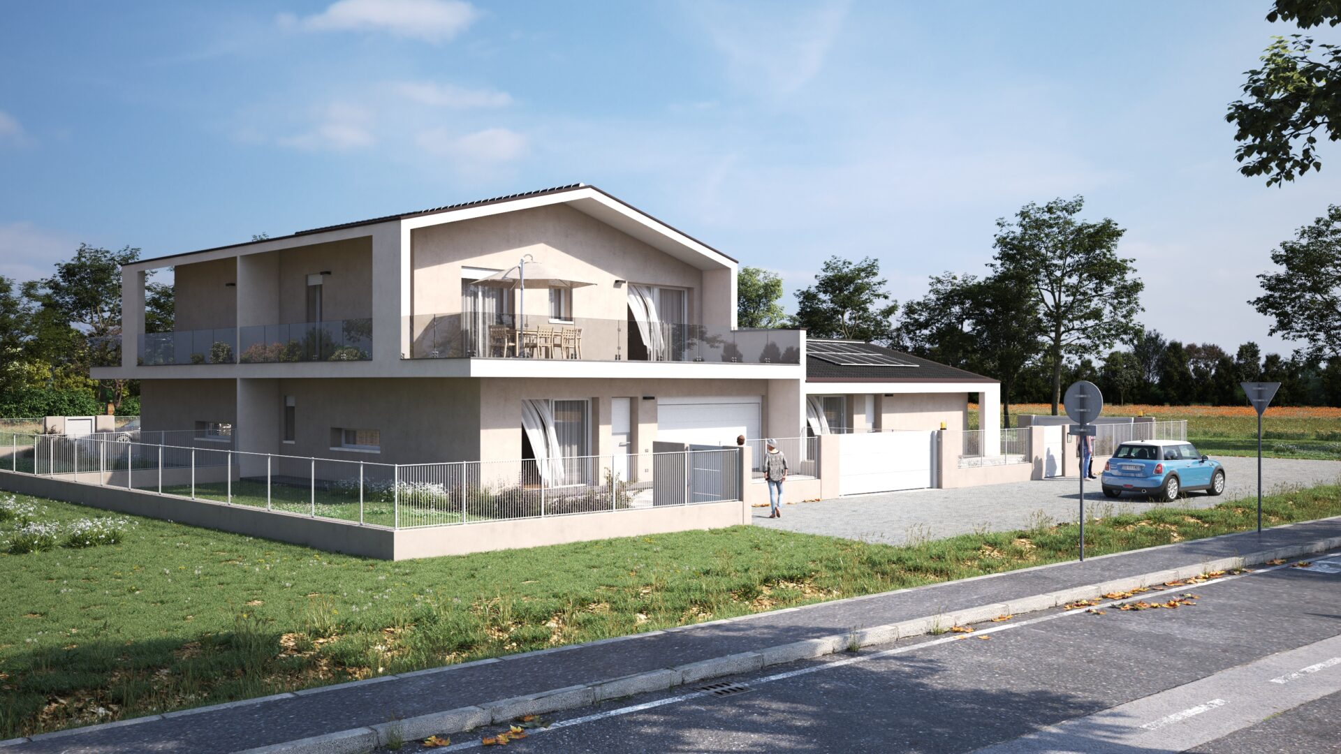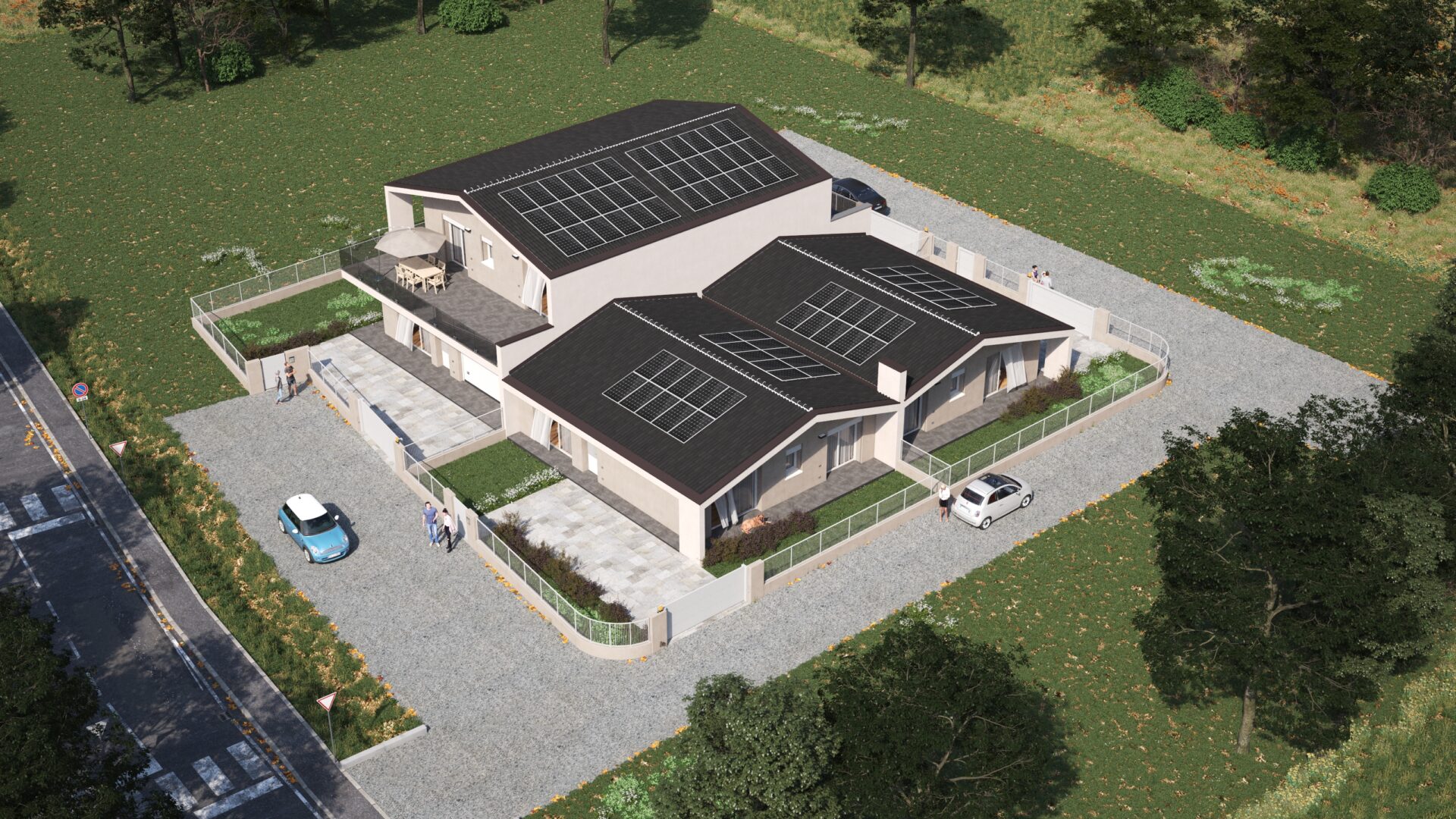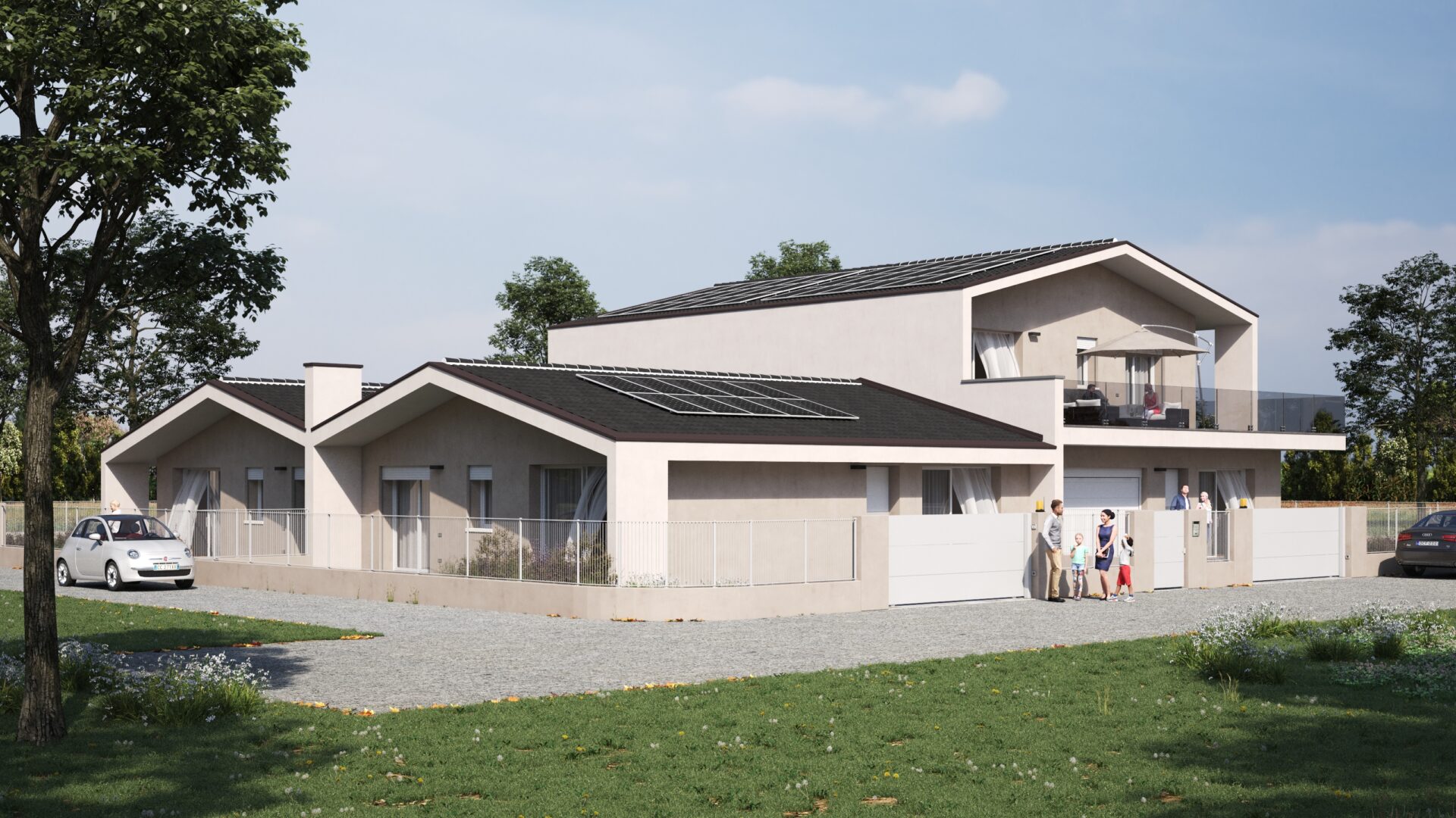 Ciascuna casa ha il proprio accesso pedonale e carraio indipendente, oltre ad uno spazioso giardino privato ideale per il divertimento dei bambini in sicurezza o ad una grigliata in compagnia.