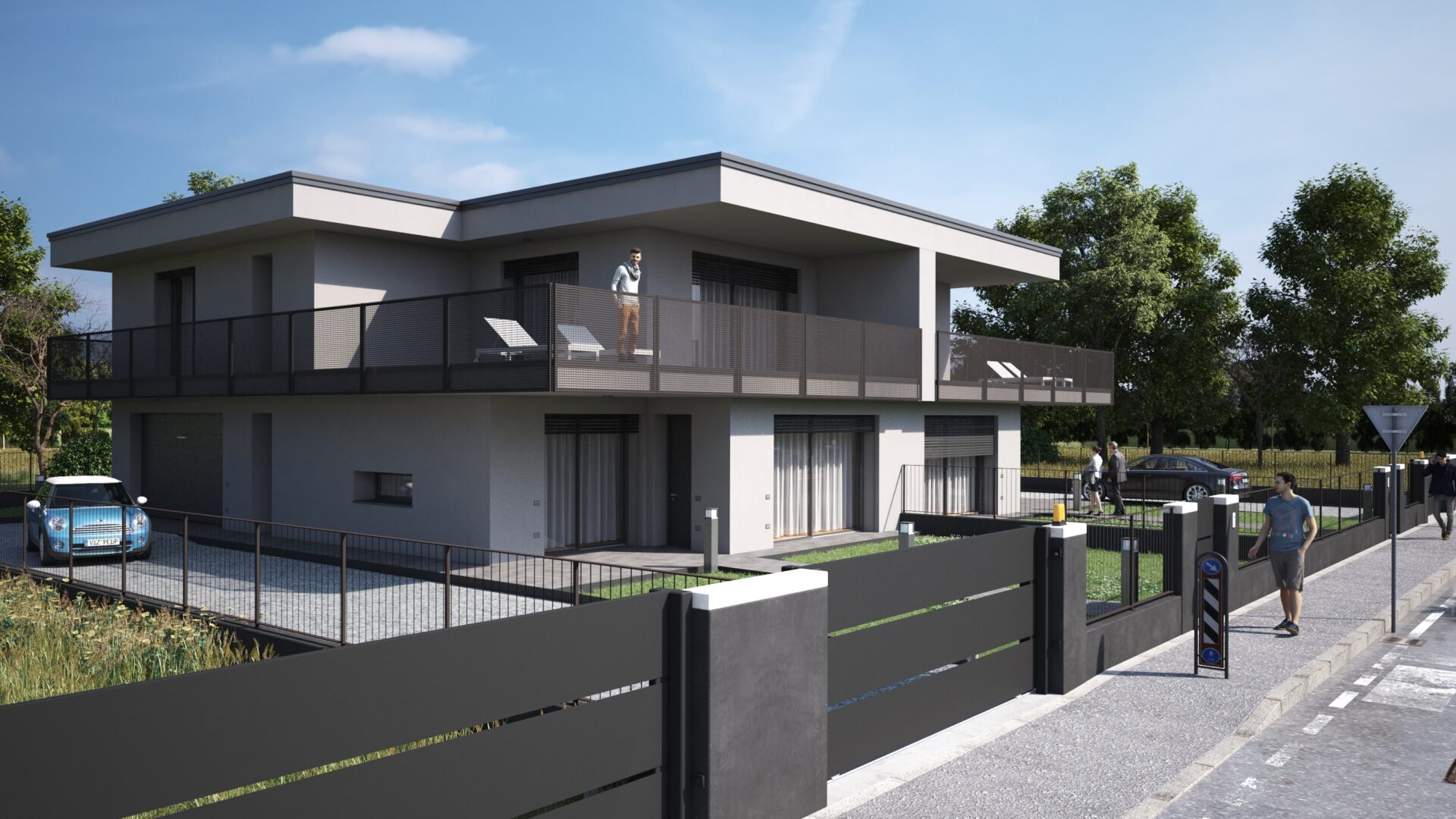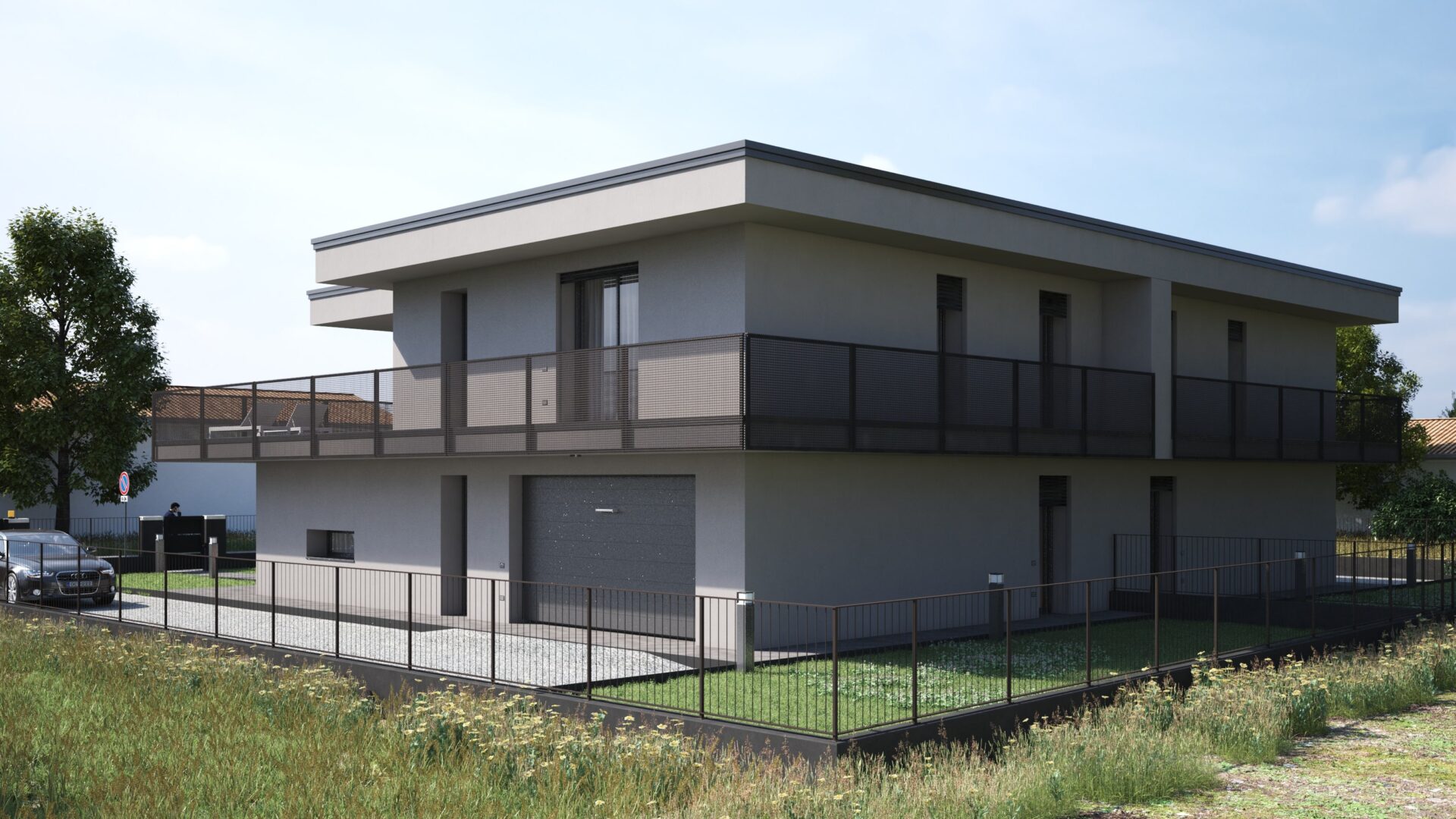 Proponiamo la costruzione di villetta bifamiliare con doppio posto auto coperto e accesso carraio e pedonale indipendenti. Completano la dotazione uno spazioso giardino privato e al piano primo una terrazza vivibile che avvolge l’intera abitazione da cui si può godere di un panorama vista monti.