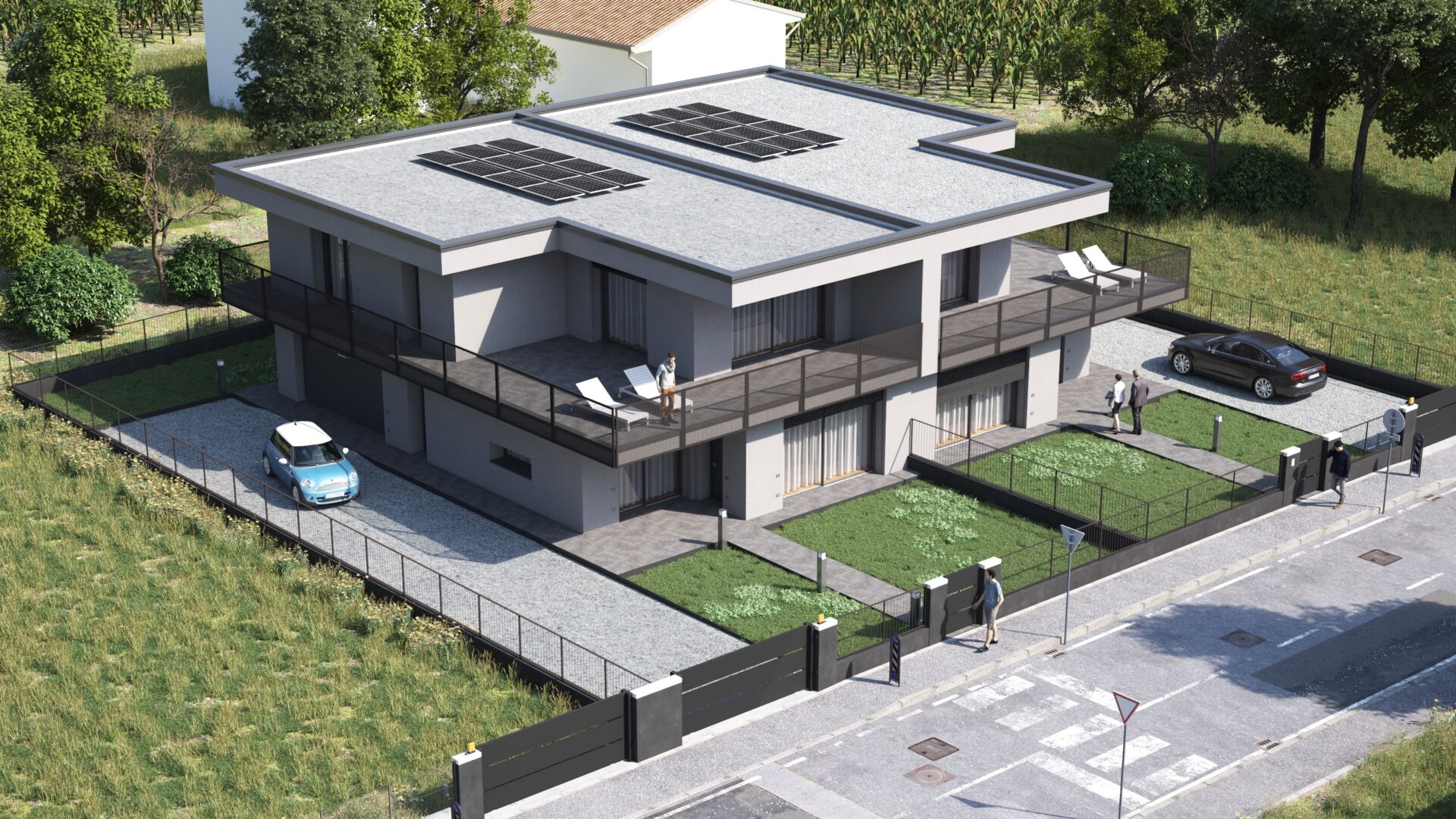 Caratteristiche: posto auto esclusivo, impianto fotovoltaico, riscaldamento a pavimento, avvolgibili motorizzati e a lamelle orientabili, serramenti in legno, terrazze panoramiche, giardino, finiture e optional a scelta